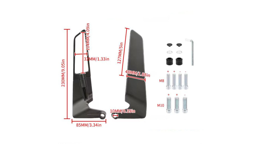 Δώστε επιθετικό στυλ και σπορ εμφάνιση στην μοτοσυκλέτα ή το σκούτερ σας με τους καθρέπτες αυτούς και το βολικό σχήμα λεπίδας που έχουν.