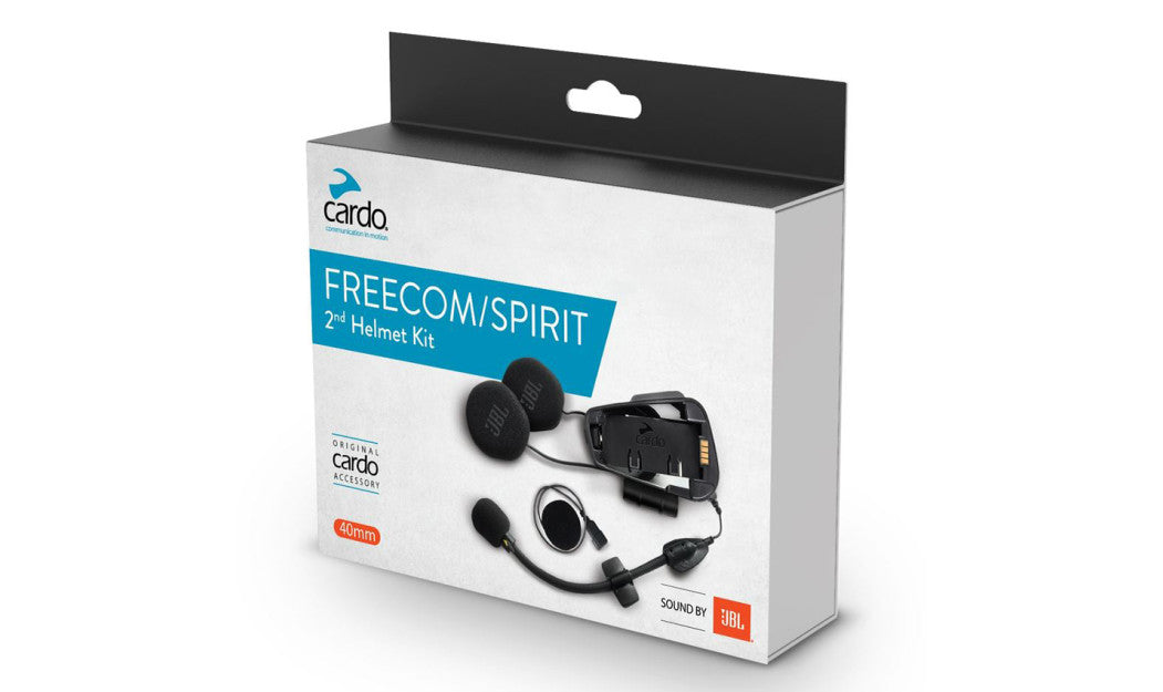 Κιτ ενδοεπικοινωνίας Cardo για τοποθέτηση στο δεύτερο κράνος σας, συμβατό με τις σειρές Freecom X, Freecom+ και Spirit, ώστε να μεταφέρετε μόνο την μονάδα και τίποτα άλλο, με ηχεία JBL®.