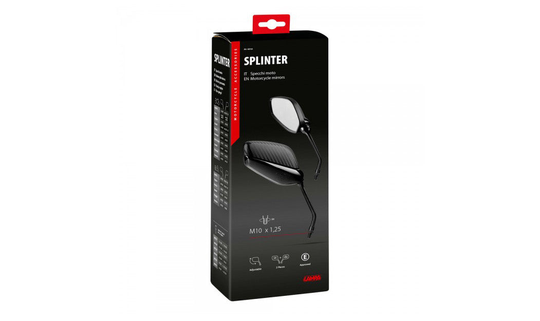 Καθρέπτες μοτό σε μαύρο/carbon χρώμα M10x1,25 SPLINTER από την εταιρεία LAMPA, ιταλικής προέλευσης.